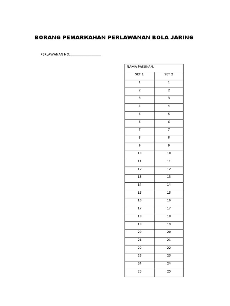 Layanan skor dan hasil pertandingan sepak bola di flashscore menawarkan skor dari 1000+ liga sepak bola. Pgsr pendidikan jasmani ipik contoh borang pegawai meja. Pengerusi jawatankuasa pengelola kejohanan bola jaring mssd klang 2013, smk (p) kapar, 42200 kapar. 82158162 borang skor bola jaring pdf document. Kelab bola jaring sekolah kebangsaan tunku putera karnival pertandingan bola jaring peringkat sekolah.
