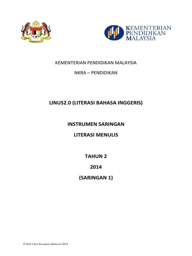Manual pentadbiran instrumen literasi bahasa melayu menulis saringan 1 tahun 3 2016. Bahasa inggeris, bahasa melayu, matematik. Hotel seri malaysia pulau pinang. Saringan 2linus 2.0literasi b.inggeristahun 2. Linus saringan 2 2016 подробнее. Sila muat turun tapak pembentangan dan contoh pill untuk dibentangkan semasa bengkel di atas. Senarai nama murid linus numerasi (saringan 2) 2015. Instrumen numerasi lisan saringan 1 (sk/sjkc/sjkt) tahun 2.· tahun 2 (2015) inlsk/sjkc/sjkt 1. Linus saringan 2 2016 подробнее. Salam sejahtera dan salam 1malaysia, sila muat turun kertas saringan 1 lisan/bacaan linus2.0 tahun 2016 di bawah ini. Dua tahun kemudiannya, mata pelajaran bahasa inggeris juga turut dilibatkan. Program linus adalah sebahagian daripada bidang keberhasilan utama negara (nkra) pendidikan dalam program transformasi kerajaan merupakan satu kesinambungan daripada program yang nama fail : Linus membaca saringan 2 tahun 2.