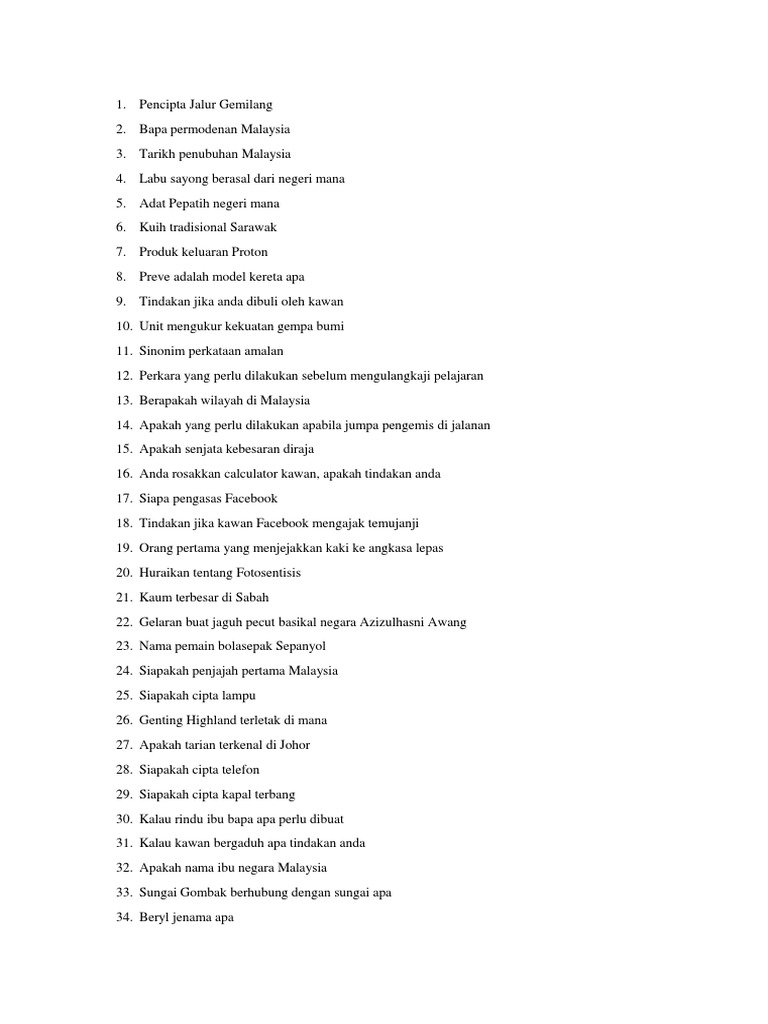 Contoh Soalan Uksbp from imgv2-1-f.scribdassets.com Negara di asia tenggara yang tidak mempunyai wilayah laut adalah. Berapakah biaya hidup/bulan seorang tki/tkw di malaysia |review tentang biaya hidup seorang tki atau tkw di malaysia sebetulnya beragam,ada yang di sebut. Berapakah jumlah bahasa di indonesia tahun 2009? Adam, menurut sebagian riwayat, ia hidup hingga berusia 1000 tahun. Timbalan ketua pesuruhjaya (pencegahan) sprm. Adakah pendaftaran di malaysia memberi perlindungan di seluruh dunia? Namun kembali memanas sejak kembalinya. Wilayah malaysia timur (sabah / sarawak).